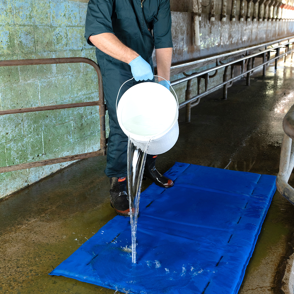When mats are new, they can require a few days of use before they properly absorb their stated capacity. Do not place mats where cows can turn on them as this may reduce the life of the mat. After milking, simply hang your Hoofmat over a rail to drain, and hose off with fresh water.